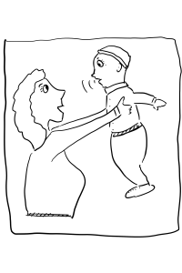 දරුවා හොඳින් මව පියාගේ ඇස දෙස බලා සිටී. ප්රතිචාරාත්මකව සිනාසෙයි.